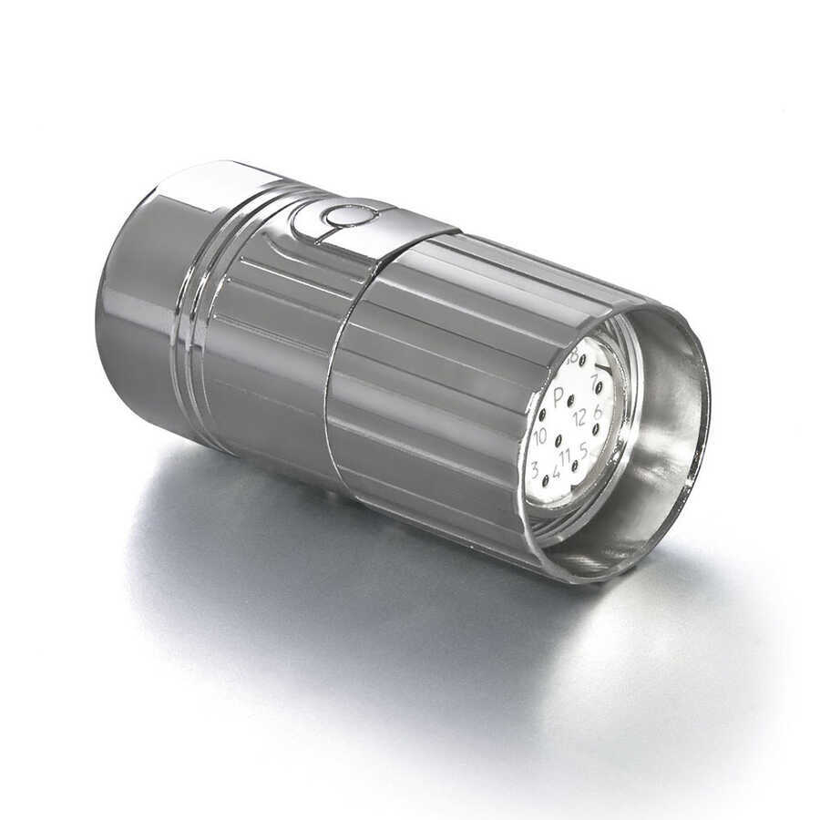 TE Connectivity tarafından üretilen Intercontec 623 serisi konnektör, M23 kasa ölçüsünde 12 kontak Dişi E dizilim Kablo Tip ve 180° (Düz) kablo çıkışına sahiptir. 160 V çalışma voltajı ve 7 A akım taşıma kapasitesinde olup, -20 ile 150 derece sıcaklıklarda çalışabilmektedir. Su geçirmez IP67 koruma sınıfındadır.
